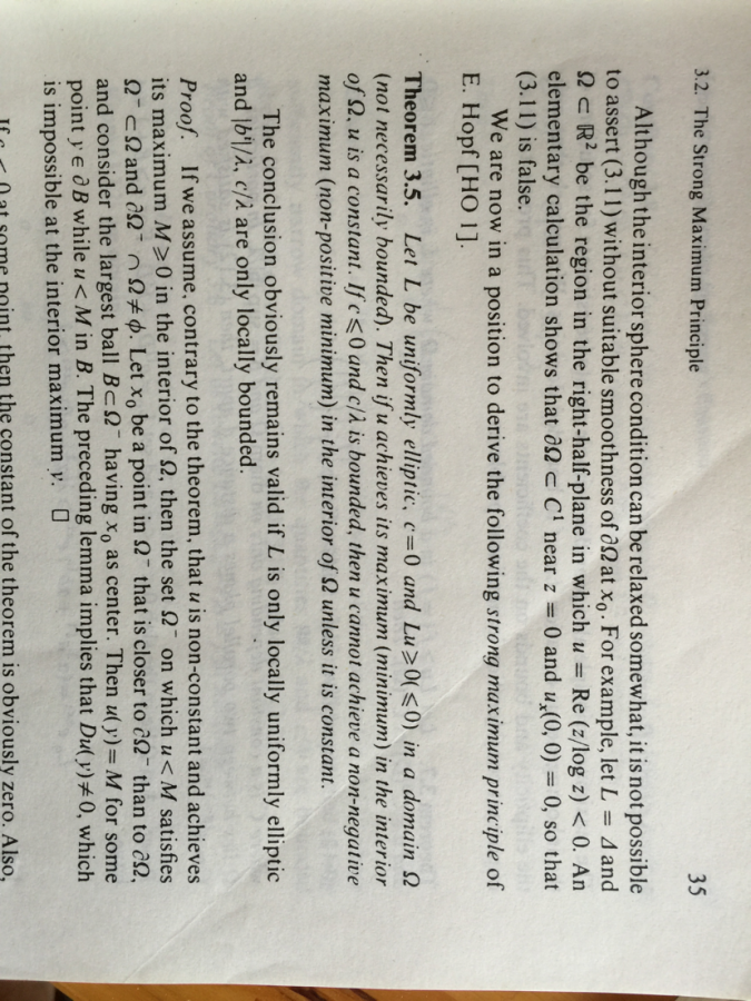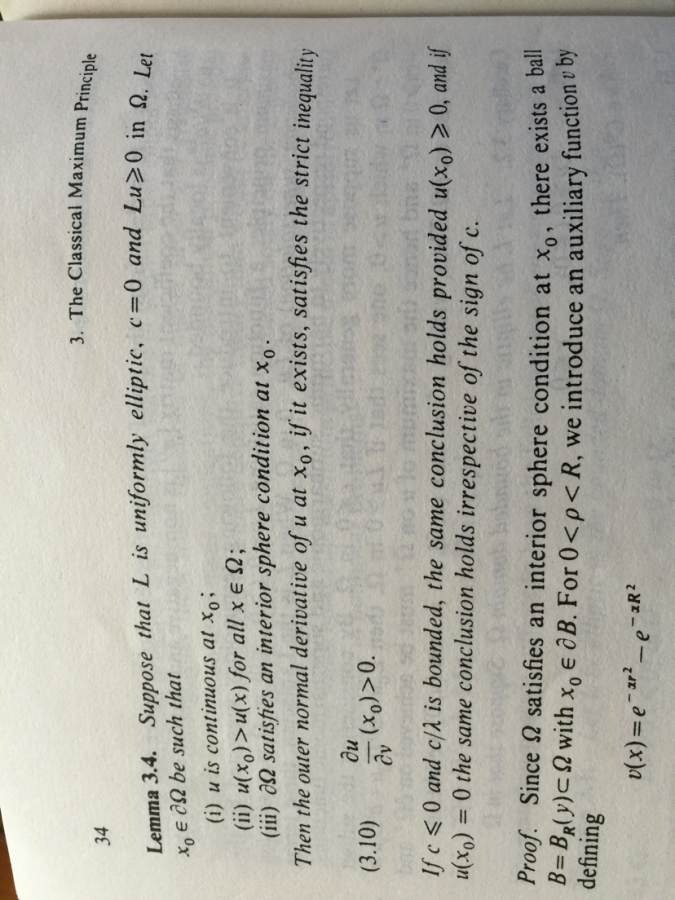 椭圆方程的Hopf原理(见图)对区域的光滑性是有要求的,即要求满足内球条件。 但是C^2区域才满足内球条件,所以教科书中都要求区域边界是C^2的。 问题来了:我听好几位做椭圆方程的朋友说过,Hopf原理对 哪位大侠能指点迷津? @laosam280 发自小木虫IOS客户端 |