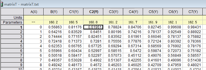 如图中所示,我想要使得第一列数据是x轴,第一行数据就是那个parameter行,是y轴,然后中间的是z轴,怎么画成三维图像呢?查了一上午,还是不会,请各位大神帮忙~ B%W2UI~AFKWHH9[T84(DR2I.png@月只蓝 |