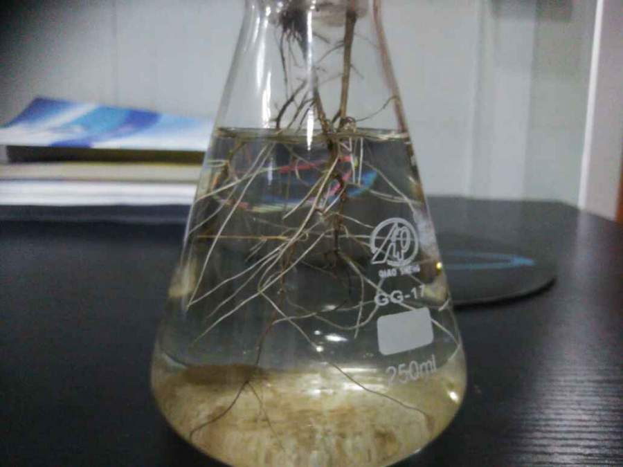 水培碱蓬一周后,上半部分叶子绿色的,靠根的那部分叶子为枯黄色,茎也变棕色了。锥形瓶里面的溶液为盐度为15的人工海水加1/5左右的Hoagland营养液,求教这是为什么。 发自小木虫Android客户端 |