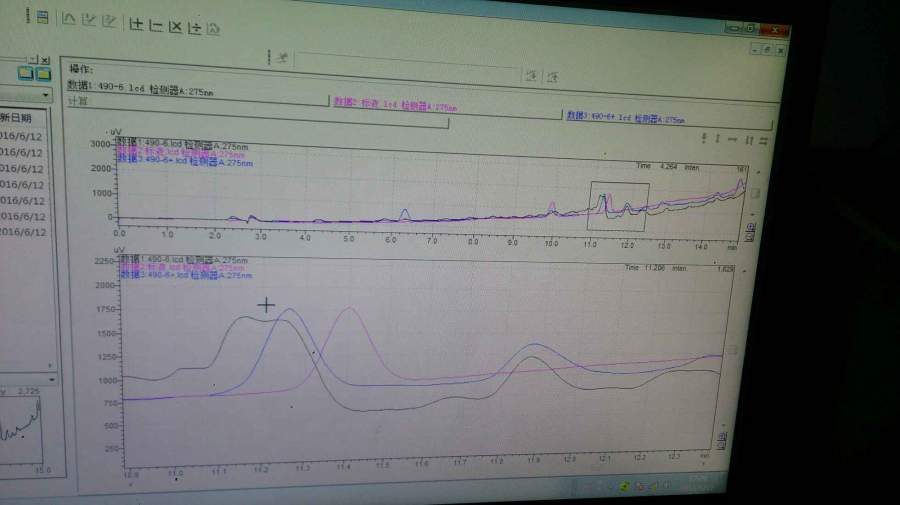 甲基硫菌灵的质控,标物,样品的谱图,多谢大神 发自小木虫Android客户端 |