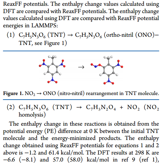 第一个不懂的是,图上表格上是如何用反应力场算各反应的焓变的啊?是用NVE系综算各反应物和产物最小potential energy,再相减得到的吗?第二个不明白的是,反应力场算的是0K的反应焓变,而量化计算的是的298K的反应焓变,不同温度下的反应焓变怎么可以进行比较呢?第三个问题是,单个物质的生成焓又是如何通过反应力场得到的呢?用NVT系综得到的势能不是一个稳定值啊?初次接触,望各位不吝赐教,谢谢;tuzi6: 11.png@smutao@oxox6085 |
