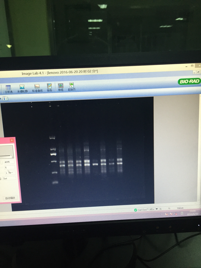 6.20的时候做pcr还是一切正常 之后就一直p不出任何东西 今天又试了试 跑出了最右侧的图 然后不用自己的体系用mix做是最左侧 也不太好 哪位大神能帮忙解释下哪里出问题了?是Taq酶的问题吗