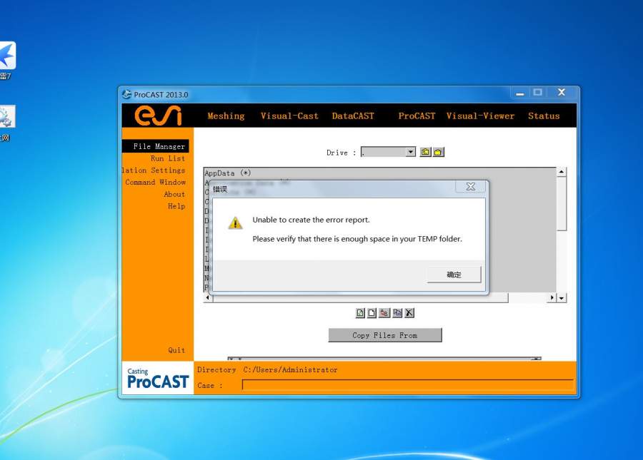 我的Visual Cast每次关闭程序都出现 Unable to create the error report. please verify that there is enough space in your TEMP folder. 我的Procast程序安装在D盘不是系统盘,空间有128G,求问这是什么问题啊! 12.JPG |