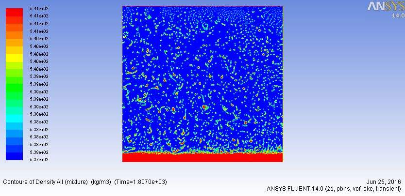 我是做的液化天然气液液两相流的问题,采用的vof模型和 boussinesq假设。由于密度和温度不同分为两个分层区,下层的密度和温度较大。左侧壁为symmetry对称边界条件,上侧为压力出口,设置回流温度为上层温度,左侧和下侧均为壁面,热流量分别为6.94和20.82w/m2.图1是我初始化后的密度云图,图2 和图3 是计算一定时间的组分和密度图。图中可以看出下层液体在蒸发啊,但实际的情况应该是由于上层液体的抑制,下层液体受热处于过热状态,上层液体轻组分蒸发密度增加。但是这里上层液体明显没有起到抑制下层液体的作用,下成绩就直接蒸发了,要起到抑制作用是要在上下层界面出进行设置么还是怎么弄,求指导,谢谢! 捕获2.JPG 捕获1.JPG 捕获3.JPG@wuming524 |