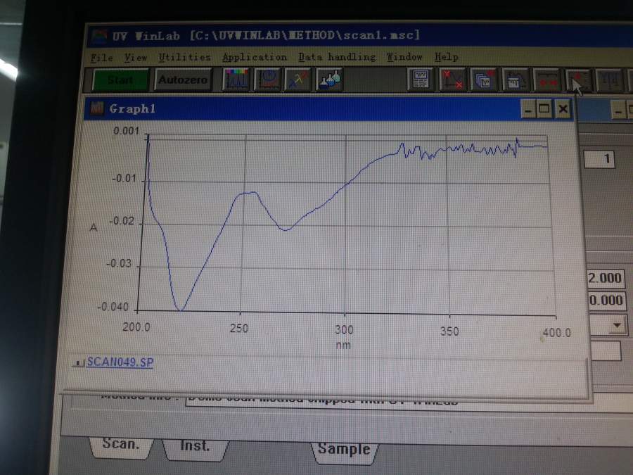 小弟目前在做一种农药缓释剂型,释放环境是乙腈水溶液,取样进行用紫外光谱扫描时出现吸光度A为负值的情况。对照原药则正常,请各位大神帮忙解答。 图一是原药对照。 图二是样品。 PS:在纯乙腈中都是正常的,水和乙腈混合溶液作溶剂时才出现吸光度为负值 qu2-1.jpg 20160624_102142.jpg |