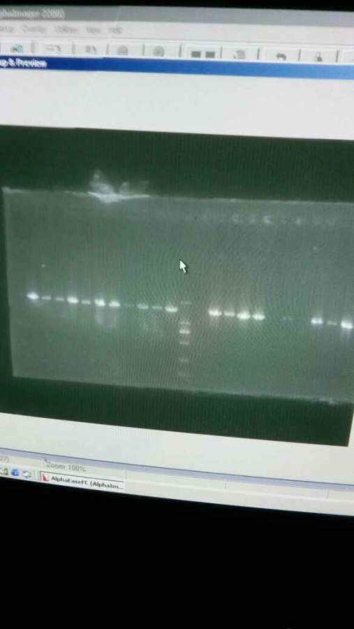 你是不是把marker的位置理解反了?如果你的是2000的marker,从上到下应该是2000,1000,750,500,250,100,你的目的条带应该是1500左右,完全符合理论值,扩增没错。 发自小木虫Android客户端 |