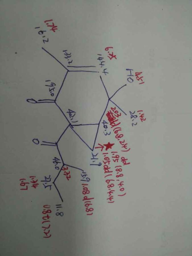 大家好,根据1d,2d核磁数据我解得如图化合物,本人比较菜碰到的化合物不多,经验少,三元环不稳定,所以想问问大家有没有见过这样的化合物,或者是否合理,谢谢(^_^)