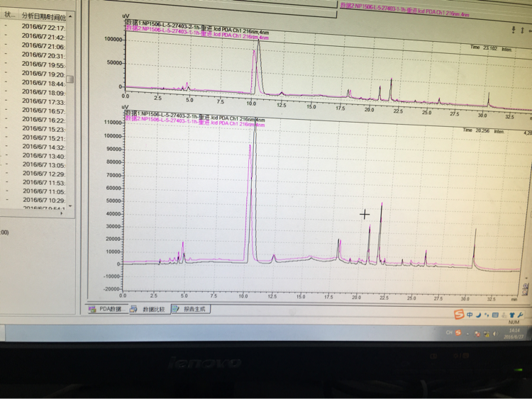 各位大神,如下图1??2??分别为化学反应式和液相分析条件,图3??是在该条件下出的峰,每次出峰主峰保留时间都不固定,图3??算飘的不严重的,我们尝试改变流动相及其ph,柱子,稀释液等问题,但都得不到有效改善。咨询过技术转移的公司,他们说流动相水系具有与产品具有离子效应,有没有好的指导的,谢谢,现在该分析方法处于停滞阶段,小试跟踪无法继续…… 发自小木虫IOS客户端 |