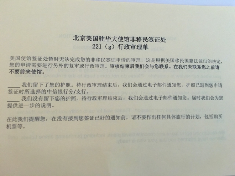 签证administrative processing 中,散金求按时issued~