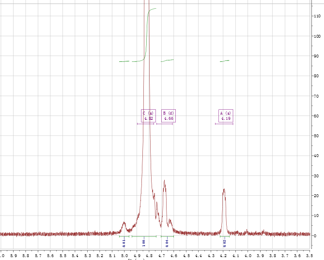 我想问一下,如果4.82处代表亚甲基,那么4.66和4.19处各代表什么含义?溶解PET的溶剂是三氟乙酸(TFA)
