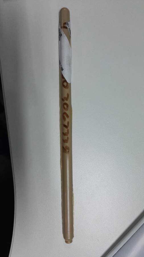 这个PEEK的棒材,直径约为0.95 cm, 长度约为25 cm。边上有些片状毛刺。(头部那我之前切断了,现在又粘回去了)。 请问这个是模压成型的,还是注塑成型的?有什么依据? IMG_20160628_091812.jpg |