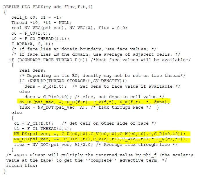 在UDF帮助文档中,关于自定义通量函数DEFINE_UDS_FLUX中有个例子,如图,其中使用NV_DS,我想把它用在2D情况,但是编译时出现“NV_DS”宏的实参不足的警告,该怎么解决?求解答 捕获.JPG |