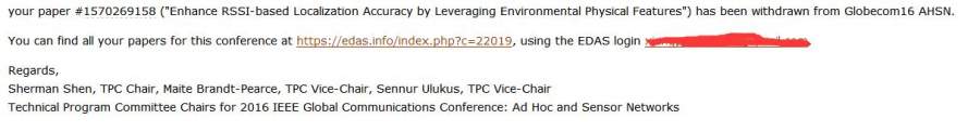 Globecom 2016等了三个月,今天发邮件给我撤销了,导师生气了