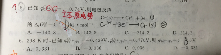 非常感谢您不厌其烦的为我解答,可是我还是有一点不明白的是,1式和2式的G是数值相等符号相反的,那么利用G与E的关系式,算出来的电极电势值不也是符号相反的吗?可是根据规定,这两个电极反应的电势应该相同啊,这个地方我还是不太理解。 发自小木虫IOS客户端 |