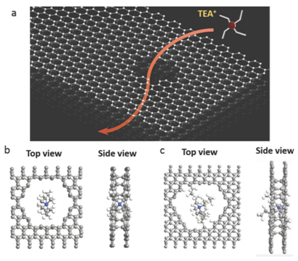 文章分享:调控石墨烯缺陷制备高能量密度、高功率密度超级电容器 石墨烯基纳米碳材料作为超级电容器的绝佳电极材料,单层石墨烯拥有2675 m2 g−1的高比表面积,由理论计算所得的双电层电容上限值约为21 μF cm−2 (约550 F g−1)。尽管如此,高能量密度超级电容器仍存在两大瓶颈:(1)由于电解质中离子只能接触到50%-70%的理论比表面积,限制了总电容量的提高,使得可获得的能量密度较低;(2)量子电容的存在限制了由石墨烯表面的双电层电容的形成,近一步降低了电容量以及能量密度。目前,提高能量密度的方法主要集中于提高活性物质表面积或通过引入氧化还原活性物质以提高法拉第赝电容,但是解决上述瓶颈问题的方法鲜有报道。 图1 电解质离子与缺陷形成的孔的相互作用,(a)少层石墨烯中缺陷形成的孔使电解质离子(如:TEA+)可由此进入层间,由密度泛函理论计算得出(b)TEA+的插层相对于(c)四丁基铵(TBA+)的插层更容易实现,(b)和(c)中,灰色球、蓝色球、白色球分别代表碳原子、氮原子和氢原子 图2 氮掺杂石墨烯泡沫制备高能量、功率密度的纽扣电池 (a)石墨烯泡沫(GF)、氩离子处理石墨烯泡沫(PGF)、氮掺杂石墨烯泡沫(NGF)组装的纽扣电池循环性能曲线比较,扫描速度1000 mVs-1,(b)将石墨烯(GF)泡沫纽扣电池与传统超级电容器(SC)、锂离子电池及其他能量储存设备的能量密度进行比较的Ragone图。 近日,美国克莱姆森大学的Jingyi Zhu等人利用对石墨烯中缺陷的调控提出了有效解决上述瓶颈的方法。通常而言,缺陷被认为是性能的终结者,然而在少层石墨烯特定区域中控制缺陷的存在可实现150%面电容密度的提高(约50 μF cm−2)。由密度泛函理论计算得出,吡咯氮掺杂可提高电子态密度,减轻量子电容的影响。此外,四乙铵(TEA+)离子可以通过由缺陷所形成的孔进入少层石墨烯层间,有效地提高电荷储存能力。更重要的是,少层石墨烯泡沫相对于传统活性碳超级电容器,其能量密度提高至少五倍以上。 免责声明: 相关研究成果发表于国际知名期刊 Adv. Mater.(DOI:10.1002/adma.201602028)上。 原文地址原文链接 |