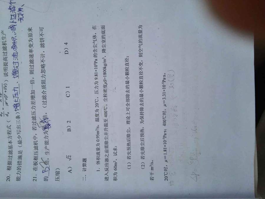 化工原理计算题如图,希望解答者可以写出详细解题过程。