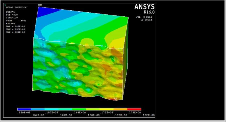 如图所示的微观粗糙表面(2μm*2μm*2μm),求助如何划分网格,我是用ANSYS自带的自由划分方式划分的,应该效果不太好,求助各位如何划分。 360截图20160703103925337.jpg 360截图20160703104147178.jpg |