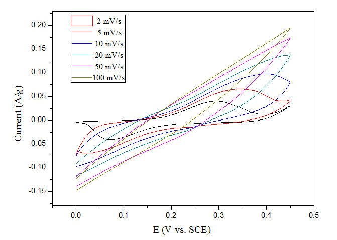 各位研友好: 本人做Ni-Co-O超级电容器材料,考察它的循环伏安曲线,为什么在低扫描速度下该材料有明显的氧化峰和还原峰出现,但是到了高扫描速度时这两个对称峰就不见了呢? 烦请各位研友帮忙指点迷津,十分感谢!!! 捕获214.PNG |