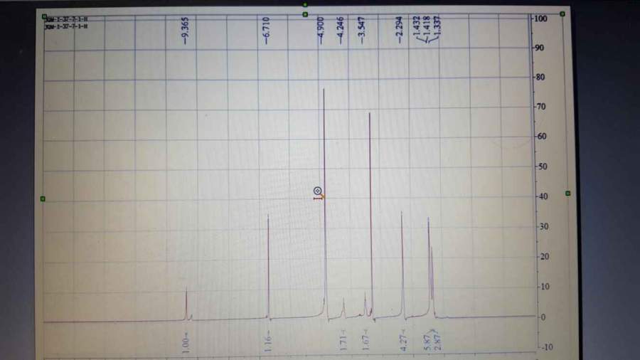 我的化合物甲醇打的谱,氢谱中有一化学位移9.3 的单峰,积分为1,碳谱上看也没有醛基的碳,请问还能是什么结构能有这么高的化学位移 发自小木虫Android客户端 |