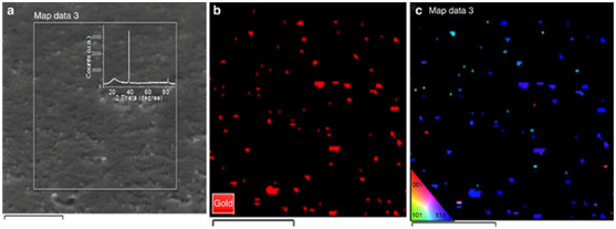 原文出处:低维材料 近期,Ana Primo研究组成功实现了在多层石墨烯上沉积(111)面定向排列的金纳米片的方法,并发现其具有催化水分解的优异光催化效率。 燃料电池的应用前景很大程度上取决于光催化分解水的效率。石墨烯常被用作光催化反应的添加剂或光活性剂。通过在多层石墨烯上沉积(111)面定向排列的金纳米片,模拟阳光下可实现H2产率0.9 molH2 /(gcomposite·h),量子产率达到0.08%。可见光照射下,产率可达到100 mmolH2 / (gcomposite·h)。 图1 制备金沉积石墨烯薄膜的方法示意 Primo研究组将壳聚糖溶液旋涂在清洁的基底上旋涂得到薄膜,缓慢浸入HAuCl4溶液中,惰性气氛下900℃高温分解。石墨烯薄膜上金的含量可控制在ng/cm2至μg/cm2之间,AFM结果显示多层石墨烯的厚度约为20nm。一方面,由于单层石墨烯具有极高的透明度(>99%),添加石墨烯是一种提高光吸收率的便捷的方式,综合考虑制备难度与透光性能选择多层石墨烯作为催化助剂。另一方面,纳米金的(111)面定向排列形成了等离子键,使该材料表现出可见光的光响应,而这一定向排列可通过X射线衍射确定。 图2 金薄膜的SEM照片 目前对这一催化机理目前尚未形成共识,该研究组提出了一种机制。一方面,石墨烯吸收紫外光子后表现出高催化活性,可以实现快的电子空穴复合;另一方面,可见光使金纳米颗粒活化,使电子从金纳米片移动到石墨烯的同时促进了电荷分离。 图3 光催化反应的可能机制 相关研究成果最近刊登在知名刊物 NATURE COMMUNICATIONS (doi:10.1038/ncomms11819)上 |