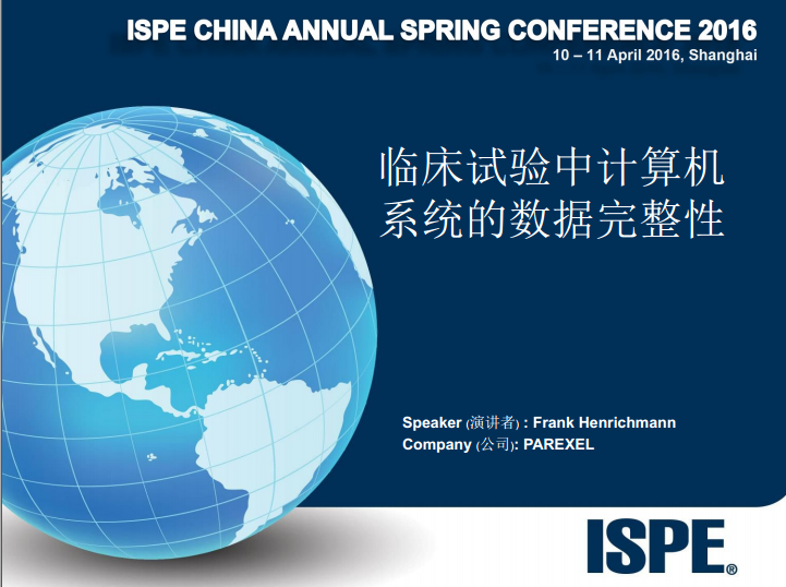 临床试验中计算机系统的数据完整性—Frank Henrichmann2016.4