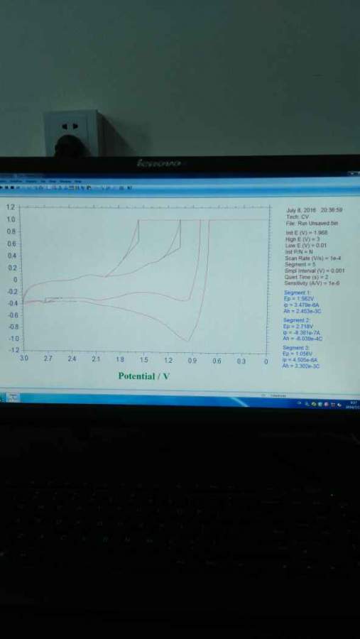 大家好,我是做锂电碳负极材料的,今年刚刚开始接触,在测cv曲线的时候在图的上面会出现一条横线,不知道怎么回事儿,而且横坐标也是反着的,求各位指点