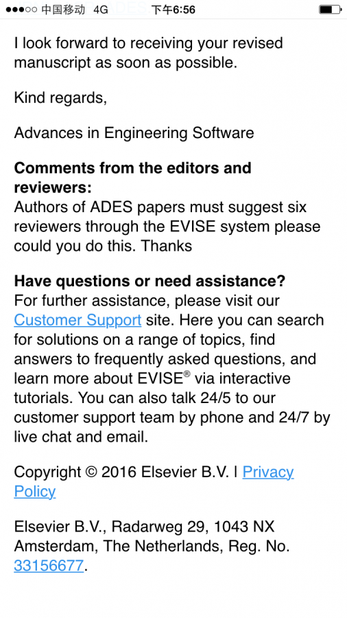 编辑是说需要通过elsevier推荐6个审稿人吗?怎么推荐(之前就是自己找了3个审稿人,写在cover letter中),他们系统里还有专家库吗?没说文章哪里需要改吧? 第一次投稿,怕理解不对,大家帮忙看看,谢谢,谢谢! 发自小木虫IOS客户端 |