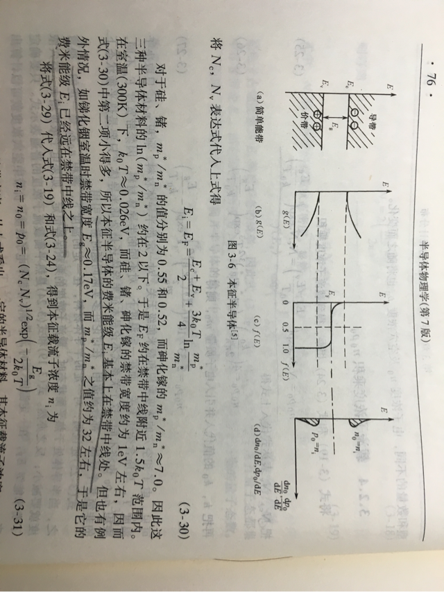 同学,我觉得你善于思考是好事,但我觉得你看书不细致,这个问题书上明明是有写的,本征费米能级并不是固定在禁带二分之一处,它会随温度变化而变化,不同材料也不一样,只是说si恰好是在非常接近禁带二分之一处的位置,如图 发自小木虫IOS客户端 |