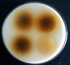 想用单宁酸PDA培养基来养菌观察产漆酶的真菌的水解圈颜色变化。但是我配制PDA培养基时加入单宁酸后培养基颜色明显变暗(单宁酸自身黄色)。倒板后的板背景也比较深,不易观察水解圈。看了下别人的图培养基基本无背景颜色(例如下图)。想问下怎么做到的?麻烦知道的虫友告诉以下,最好带上配方比例,谢谢谢谢 1.jpg |