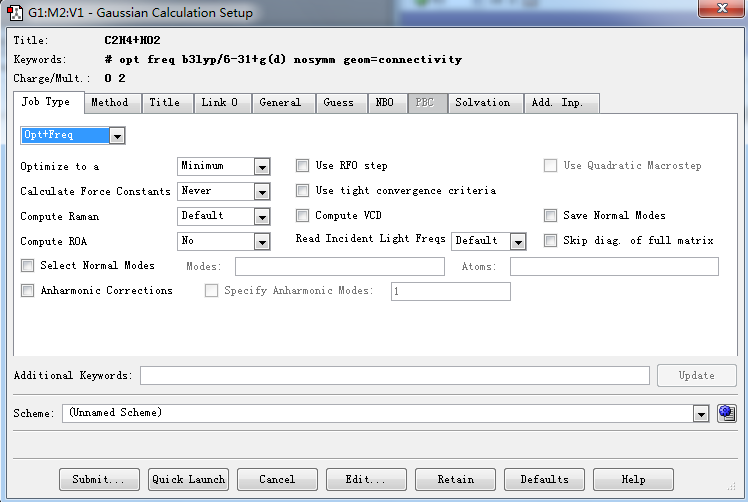 在用密度泛函DFT优化C2H4+HO2时一直重复循环计算401/502/703步,以下是GV中的设置,求大神指点。。。。