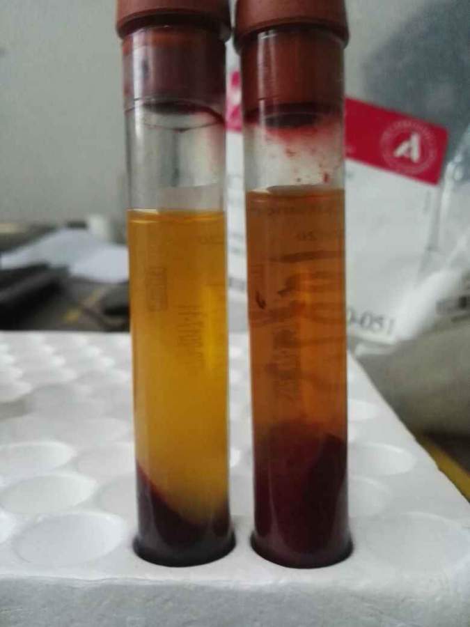 采用凝血的管子(管子见图)采牛尾部静脉血,采集后在30分钟左右放入离心机,3000r/min 10min,上层为血清,下层血浆,但是发现,在中间部分,有接近血清的颜色的胶状物,请问胶状物是什么成分,是什么原因造成的?附图。这样大家! 发自小木虫Android客户端 |