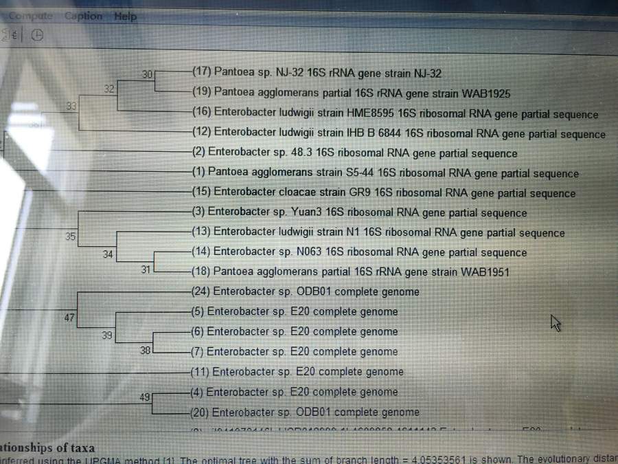 MEGA7软件画出的这种进化树,想知道怎么修改菌种和删掉前面的序号,尝试保存成word形式,但image下并没有这个选项(大哭),求解。。。还想被大神们科普一脸关于进化树的具体数值代表含义。。。 IMG_0027.JPG |