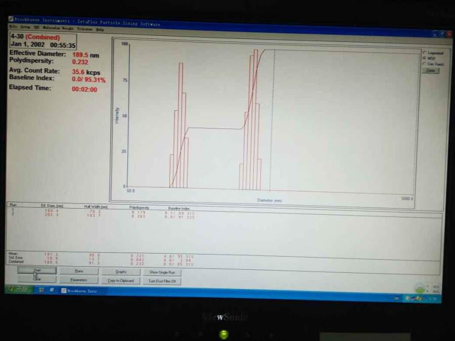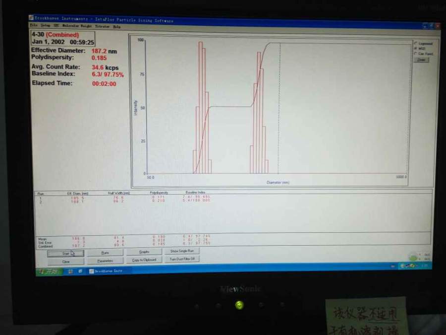 | 用美国布鲁克海文粒度分析仪测试,得到的数据如何分析,求助各位。 |