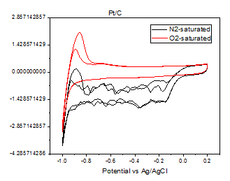 一般在KOH溶液中进行CV测试时,先往溶液中通O2或N2半小时以上,保证溶液中含有充分的所需气体;之后将滴好样品的电机浸没于溶液中,我们这以100mv.s-1 的速度进行活化100圈(此过程继续通气体)后, 关闭气体,不用旋转,以10MV每秒的速度扫两圈,最后再扫一圈为所得数据。
