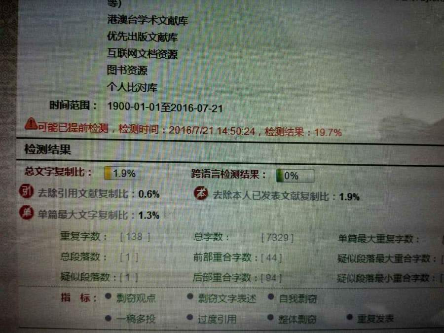 图片上那个提前检测的估计就是杂志社检测的,说重复率在19%
