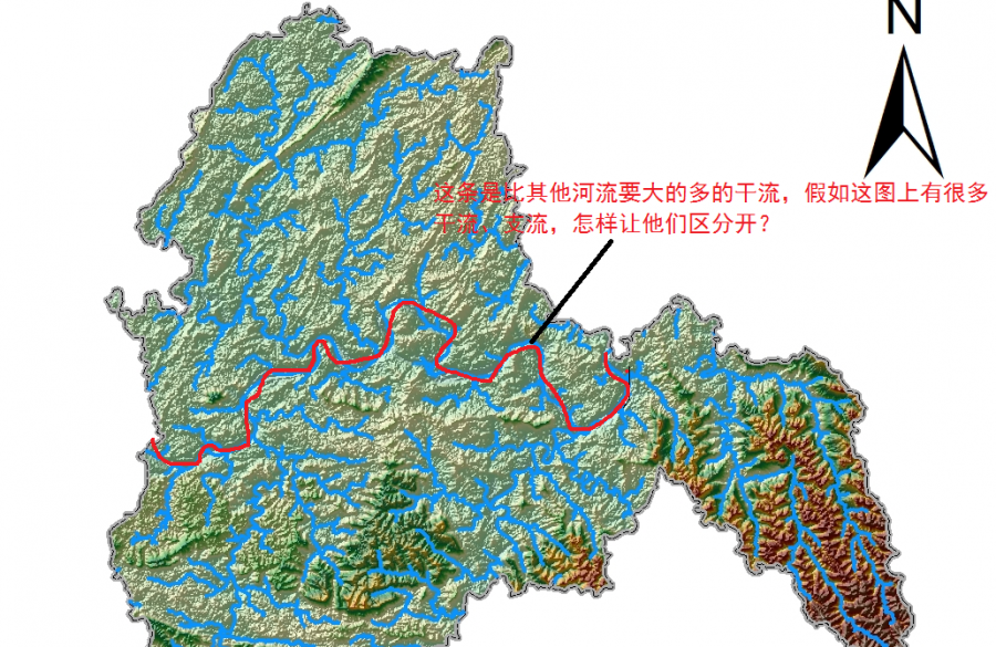 关于提取河网,怎样将干流、支流、冲沟区分开,并以河网的粗细表示出来?