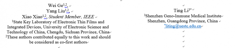 1 ifferent affiliation list for different columns (see the attachments)2:the authors should put under title and in the middle of the whole line. 3:put the pictures which can not be set apart as two columns at the end of the article. 4 ay attention to your reference(see the attachments)然后对照我自己的论文,目前的截图如下: 第一次投EI,就这三点不太明白 谢谢有经验的大神! |