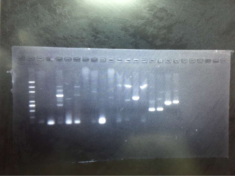 做了菌液PCR,发现片段大小是对的,然后送去测序,发现都是空载体,老师怀疑是我引物污染,下面这张图是我对引物做的PCR,前11个为十一对引物,12 14 16为质粒PCR,13 15 16也事质粒对应的阴性对照。求大神分析