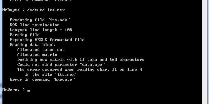 求高手帮忙看一下我的Mrbayes读取准备文件时遇到的错误是什么? 已有1人参与