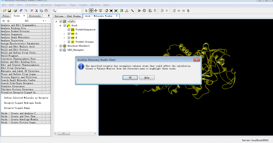 DS2.5进行分子对接时不能定义受体蛋白是怎么回事?