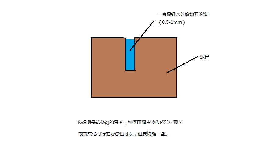 最近做试验有需要测量泥浆中的一个很窄的缝隙的深度,泥浆的软硬程度可以保证缝隙的长时间存在,网上查到超声波传感器可以测量泥浆的深度,可不可通过某些方法用超声波传感器实现对这条缝隙深度的测量。下面有示意图 超声波.png |