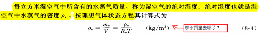 绝对湿度计算公式中为何没有摩尔质量?