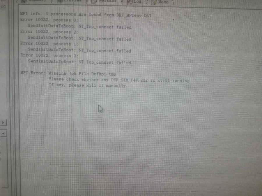 我的DEFORM-3D前处理设置完之后,点"run(option)"选4核运算之后,总是出现图片中所示的界面,运行不下去。请问哪位老师同学知道是怎么回事? @wacky1980 发自小木虫Android客户端 |