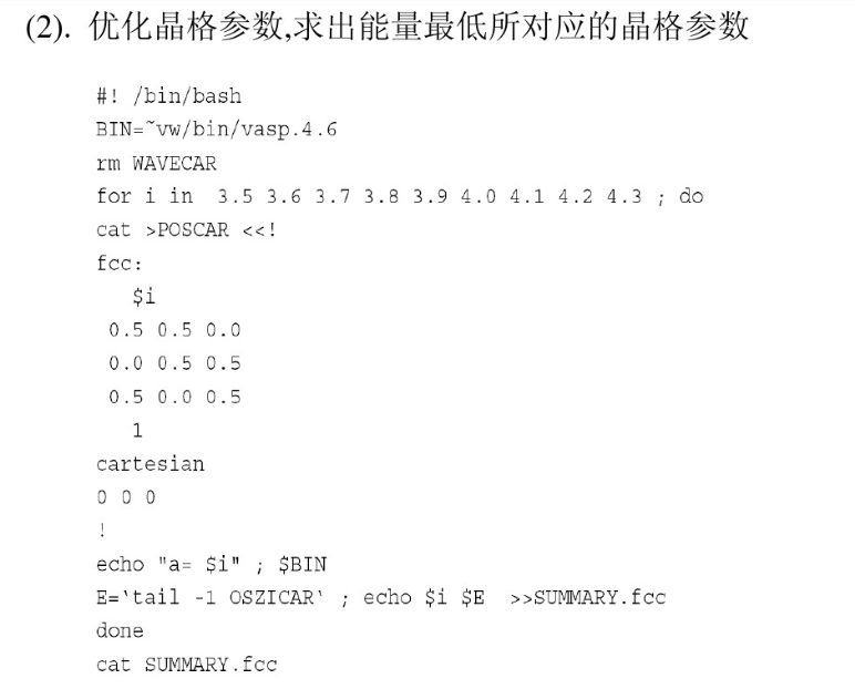 在运行VASP的时候,一些小程序怎么使用呀?比如,在优化晶格参数的时候,看例子,上面写了这个程序,如果我想使用,怎么使用?需要改动那里?小弟是新手,求大神指教。详细点最好啦!再次感谢!如果在Liunx下运行,是怎么运行的呀? 111.png |