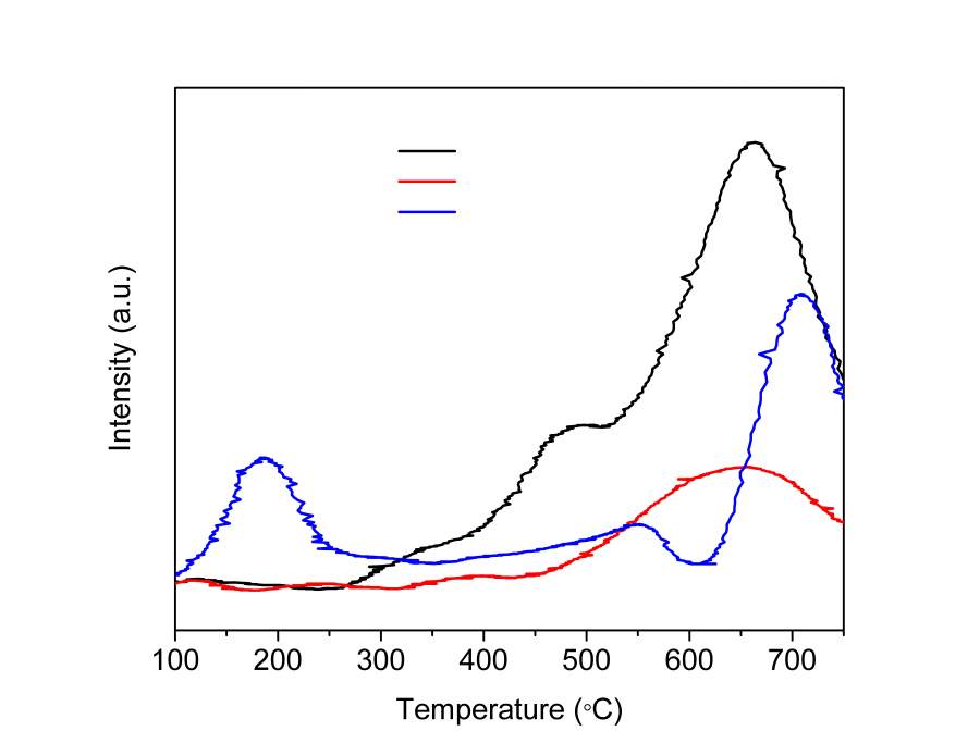 求教大神们,我做了两种催化剂,Pd分别负载在TiO2/AC和CeO2/AC上,并做了相应的H2-TPR(见图,黑线AC,红线MeOx/AC,蓝线Pd负载后的),有以下几个问题想请教一下。 1. 没有出现明显的负峰,说明没有PdH的形成吗? 2.金属氧化物的还原峰也没有非常明显? 3.可否得出结论:当Pd负载后,与金属氧化物有相互作用? 先感谢各位专家、朋友了! |
