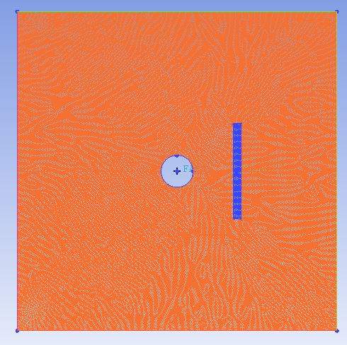 二维网格。整个计算域是正方形中央掏走一个圆。 然后还要再定义一个矩形的区域,是另外一种属性的材料。