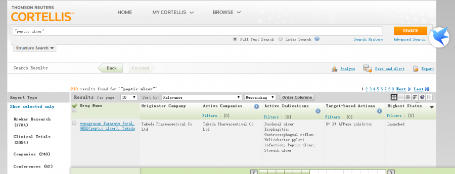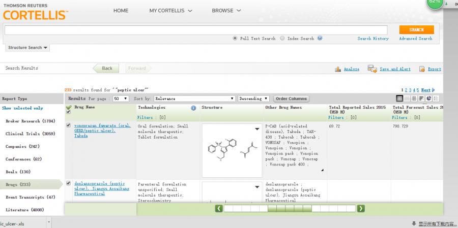 | 想查消化性溃疡药物在全球的销售情况和发展趋势,在汤森路透 (Thomson Reuters)里面找的内容下了下了,由于不太懂怎么查,只好自己统计,发现该数据库统计的销售额很少,比国内多不了多少,我就怀疑汤森路透 (Thomson Reuters)统计的销售额是哪的销售额?请帮忙,如果知道怎么使用和查询或者帮我查一下消化性溃疡药物的全球销量情况就更好了,不胜感激!!!! |