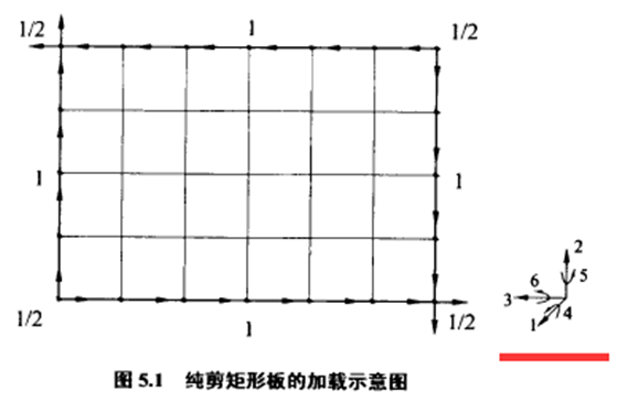 查阅好久,论文中是这样说的:根据剪应力互等定理,矩形板在纯剪切状态时,相邻边的剪力值大小相等、符号相反。ANSYS 分析时荷载以节点荷载的形式施加在矩形板的四边节点上,节点荷载值按照节点的从属边长计算,四边中间节点荷载值为1,四个角点的荷载值为1/2。弹性计算的结果表明,在图示荷载的作用下,矩形板处于纯剪应力状态。
