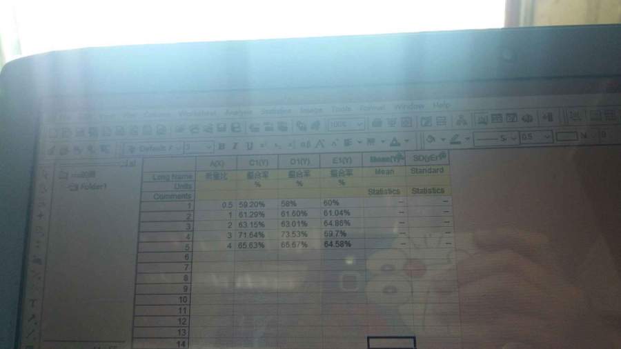 小白第一次用origin作图,输入三次结果后想计算平均值和SD,可是没有结果?想问哪里出错了?