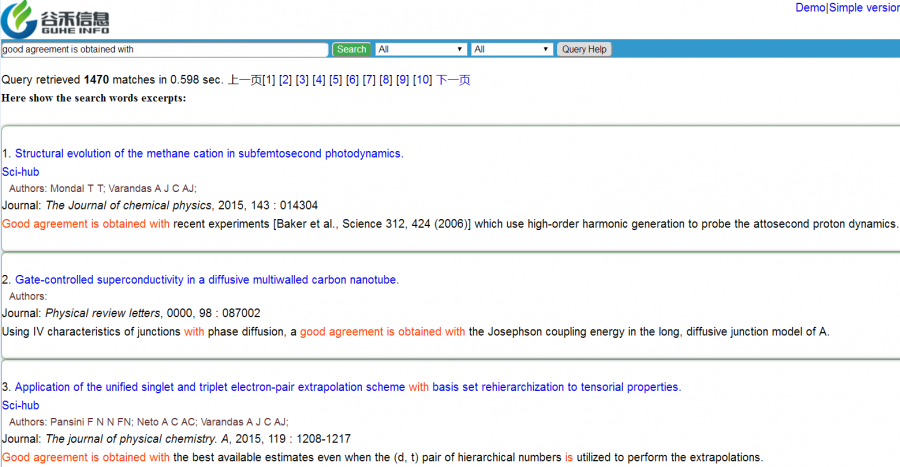 谷禾学术搜索系统全面恢复,句子搜索升级版本,可以针对论文的特定部分进行句子搜索,全文搜索更新了摘要部分至20160809。增加了Sci-hub的链接,点击可以直接查看全文pdf。搜索 ...